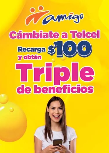 En tercer lugar tenemos a telcel que te brinda el triple de su recarga basica de 100 pesos por cambiarte que son 5.5 gb libres, esta opcion queda muy por debajo de movistar y mucho mas de bait